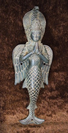 mermaid in green-antik, manufactured of bronze based on copper, 30 x 11 x 9cm, 1,40kg
